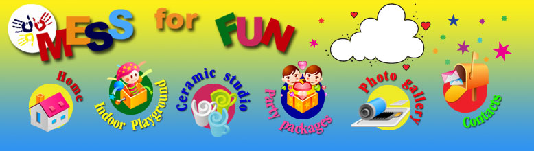MESS FOR FUN Welcome to the wonderful world of MESS FOR FUN where the FUN NEVER ENDS. Mess for Fun is an indoor playground and ceramic studio designed for children and adults. We offer a safe, spacious, child-friendly environment with a designated play structure, playhouse, ball pit, jumping castle and many more activities. While the kids play, the adults can sit back and relax or play along with the children. Mess for Fun is a peanut-free, clean and safe environment. |  |  |